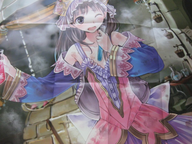 And finally we have the tear and water resistant poster, which was an exclusive to the NIS America online store. Er, I'm afraid to ask why a poster needs to be water resistant... Anyway, this poster clearly isn't aimed at me, as both side feature Totori looking, well, cute. If it were me, I'd much rather have a group illustration or even the very first picture they used as the box art on the limited edition (or, I admit it, one of the male characters...). Can't have everything, I suppose!